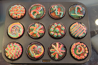 The picture above is white because you need to squeeze a bit of the frosting out first to allow the colour to run. =D and the pictures below are all the designs. hope you guys enjoy. revisit my previous post to see the instructions on how to do the rainbow icing. as for the buttercream frosting recipe *Vanilla Buttercream Frosting* <-- click the link. gave me some great tips about frosting and icing.i like this design the best though its going to be really sweet
